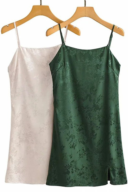 RUCHED SATIN SPAGHETTI STRAP MINI DRESS