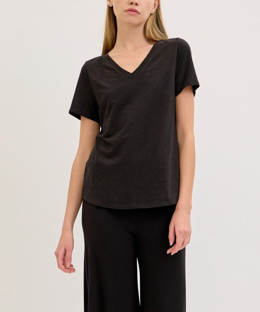 BAMBOO COTTON SLUB V NECK SHORT SLEEVE