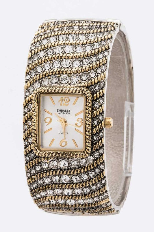 SPIRAL RHINESTONE BRACELET WITH PEARLS