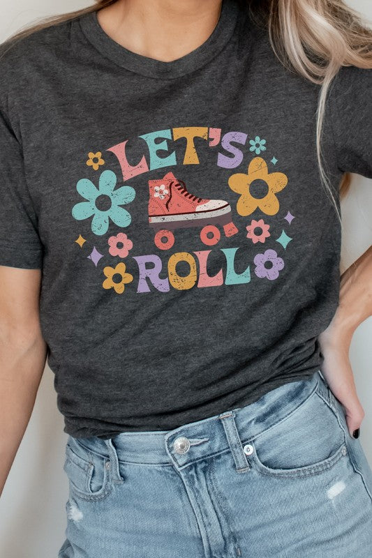 Lets Roll High top Roller Skate Floral Graphic Tee