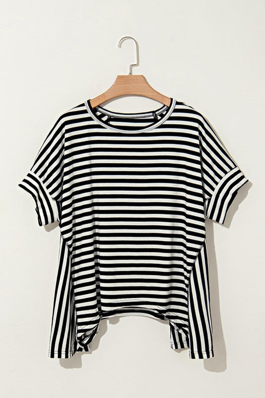 Stripe Drop Shoulder Oversized Henley Knit Tee