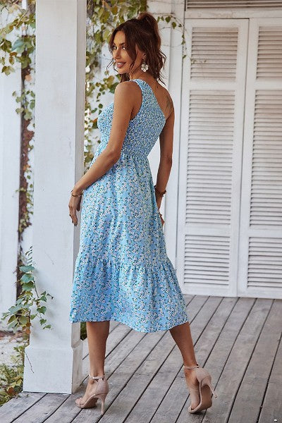 One-Shoulder Floral Smocked Dress – Soft Girl Statement Look