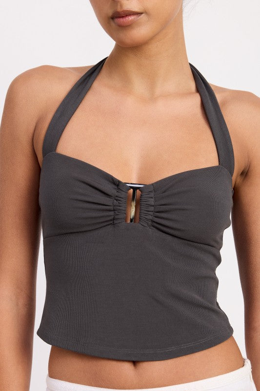 HALTER TIE BACK KNIT TOP WITH FRONT CUTOUT