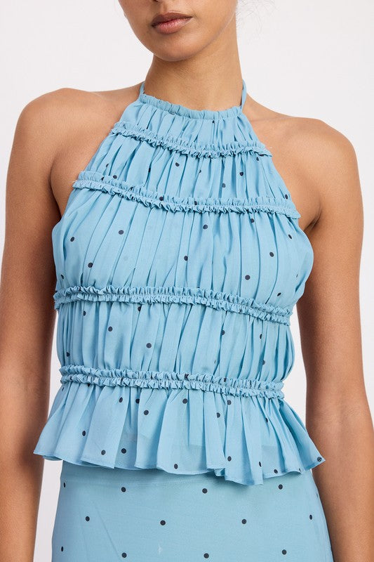 SMOCKED SLEEVELESS TOP WITH OPEN BACK