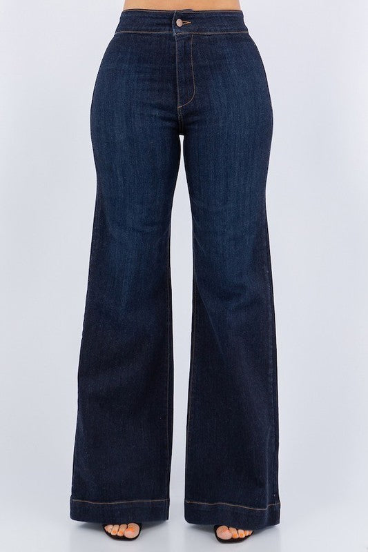 Get ready to meet your new favorite jeans: the Harley Wide Leg! Combining style and comfort like never before, these denims feature a stretchy premium fabric, a wide waistband, and a unique medium wash. With a front button and zipper closure, back pockets, and a wide hem detail, these jeans have it all. Best part? They're made right here in the USA and come in a perfect 32" inseam. Say hello to your new go-to jeans!