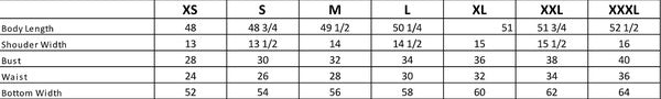 L: 32.0 (Bust), 28.0 (Waist), null (Hips), 49.3 (Length)